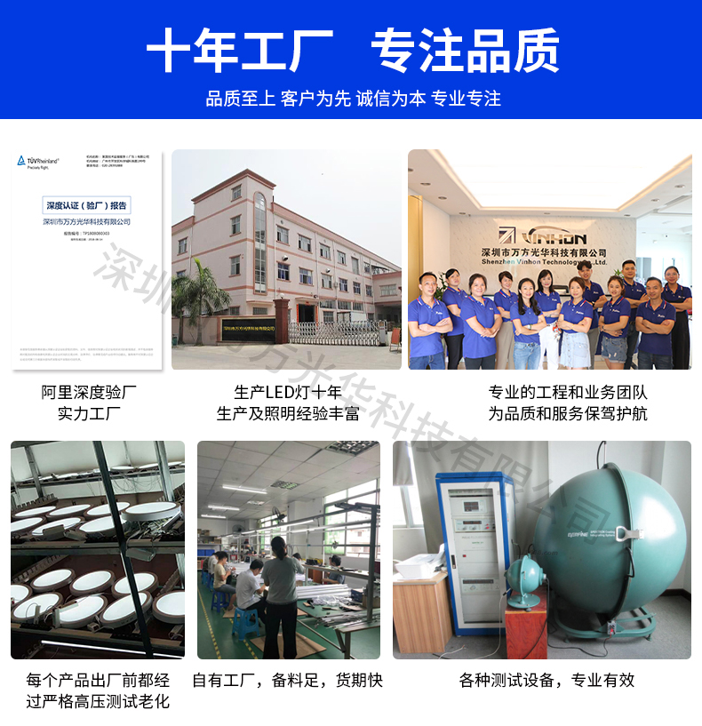 深圳市万方光华科技有限公司,专业研发、生产及销售LED灯管、面板灯、射灯、筒灯等工程照明LED灯,自有工厂,货期快,质量保证,目前已为全球数十万场所提供照明灯具及方案。面板灯系列里有集成吊顶面板灯、超薄圆形面板灯、方形小面板灯、明装面板灯、红外感应面板灯、雷达感应面板灯等,规格款式多样,可按照客户需求定制。