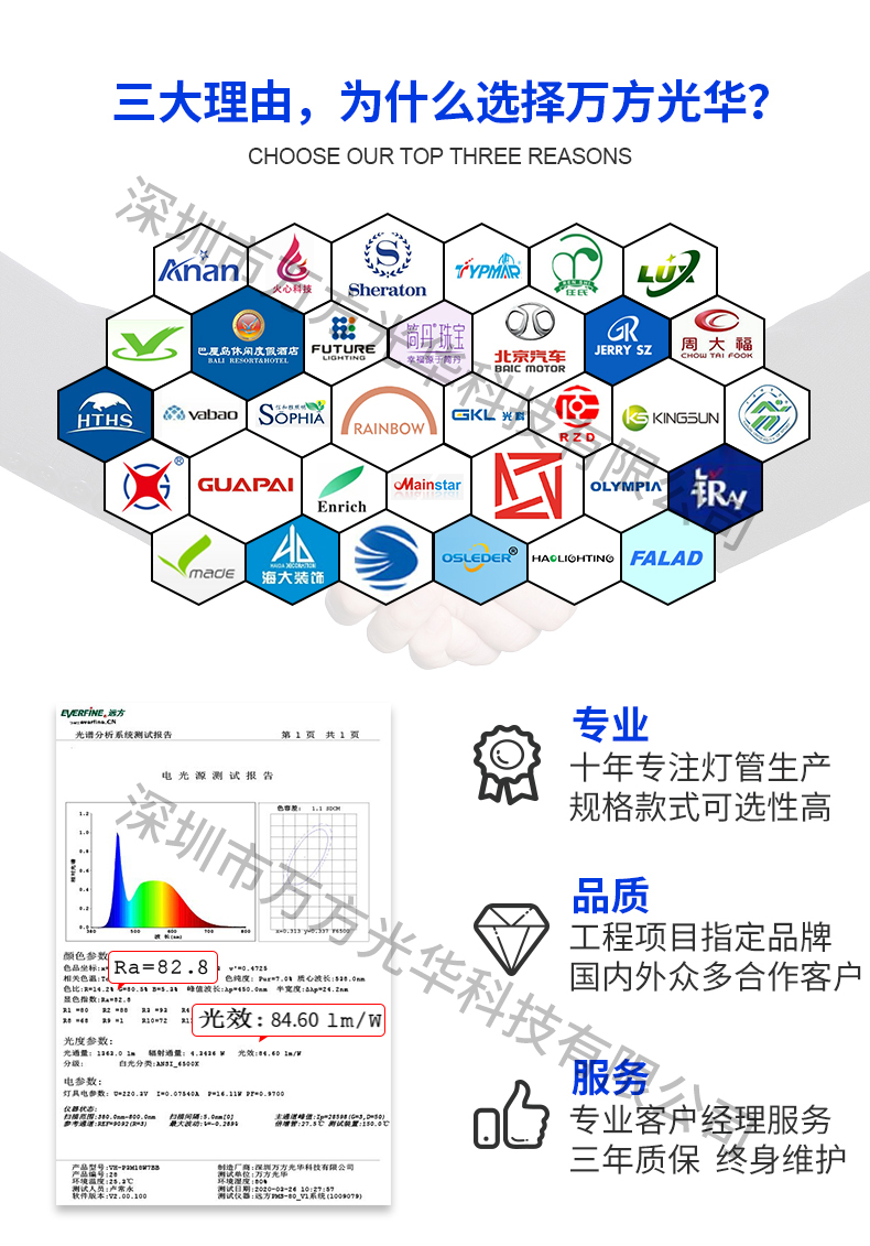 深圳市万方光华科技有限公司,专业研发、生产及销售LED灯管、面板灯、射灯、筒灯等工程照明LED灯,自有工厂,货期快,质量保证,目前已为全球数十万场所提供照明灯具及方案。面板灯系列里有集成吊顶面板灯、超薄圆形面板灯、方形小面板灯、明装面板灯、红外感应面板灯、雷达感应面板灯等,规格款式多样,可按照客户需求定制。