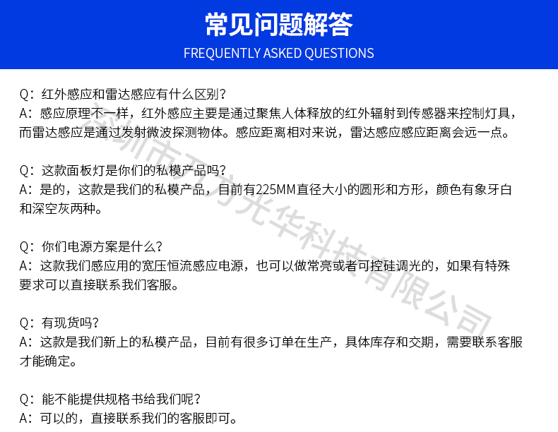 深圳市万方光华科技有限公司,专业研发、生产及销售LED灯管、面板灯、射灯、筒灯等工程照明LED灯,自有工厂,货期快,质量保证,目前已为全球数十万场所提供照明灯具及方案。面板灯系列里有集成吊顶面板灯、超薄圆形面板灯、方形小面板灯、明装面板灯、红外感应面板灯、雷达感应面板灯等,规格款式多样,可按照客户需求定制。