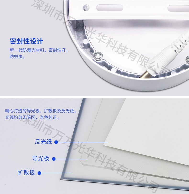 深圳市万方光华科技有限公司,专业研发、生产及销售LED灯管、面板灯、射灯、筒灯等工程照明LED灯,自有工厂,货期快,质量保证,目前已为全球数十万场所提供照明灯具及方案。面板灯系列里有集成吊顶面板灯、超薄圆形面板灯、方形小面板灯、明装面板灯、红外感应面板灯、雷达感应面板灯等,规格款式多样,可按照客户需求定制。