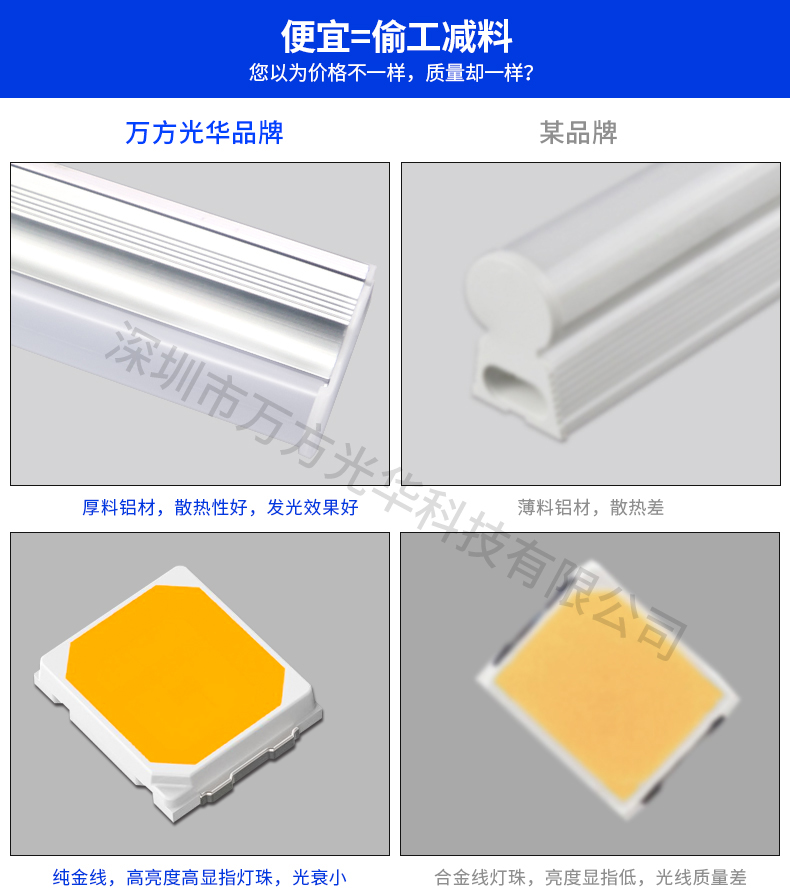 深圳市万方光华科技有限公司,专业研发、生产及销售LED灯管、面板灯,自有工厂,货期快,质量保证,目前已为全球数十万场所提供照明灯具及方案。灯管系列里有t5分体灯管、t5一体灯管、t5一体对接头灯管、t8分体灯管、t8一体灯管、t8转t5灯管、FA8灯管、双光源灯管、v型灯管、感应灯管等,规格款式多样,可按照客户需求定制。