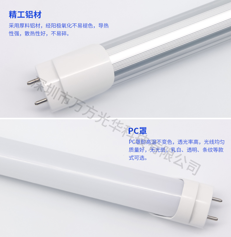 深圳市万方光华科技有限公司,专业研发、生产及销售LED灯管、面板灯,自有工厂,货期快,质量保证,目前已为全球数十万场所提供照明灯具及方案。灯管系列里有t5分体灯管、t5一体灯管、t5一体对接头灯管、t8分体灯管、t8一体灯管、t8转t5灯管、FA8灯管、双光源灯管、v型灯管、感应灯管等,规格款式多样,可按照客户需求定制。