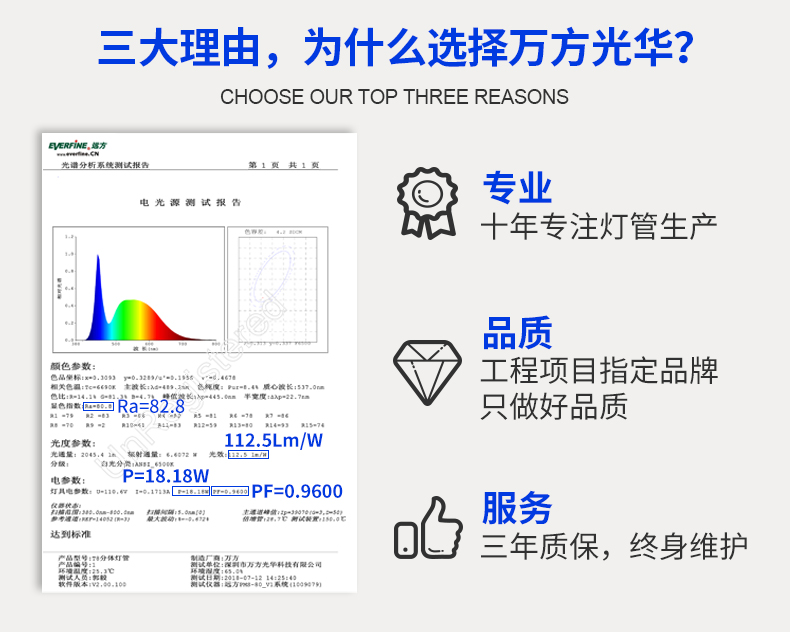 深圳市万方光华科技有限公司,专业研发、生产及销售LED灯管、面板灯、射灯、筒灯等工程照明LED灯,自有工厂,货期快,质量保证,目前已为全球数十万场所提供照明灯具及方案。灯管系列里有t5分体灯管、t5一体灯管、t5一体公母对接头灯管、t8分体灯管、t8一体灯管、t8转t5灯管、FA8灯管、双光源灯管、v型灯管、感应灯管等,规格款式多样,可按照客户需求定制。