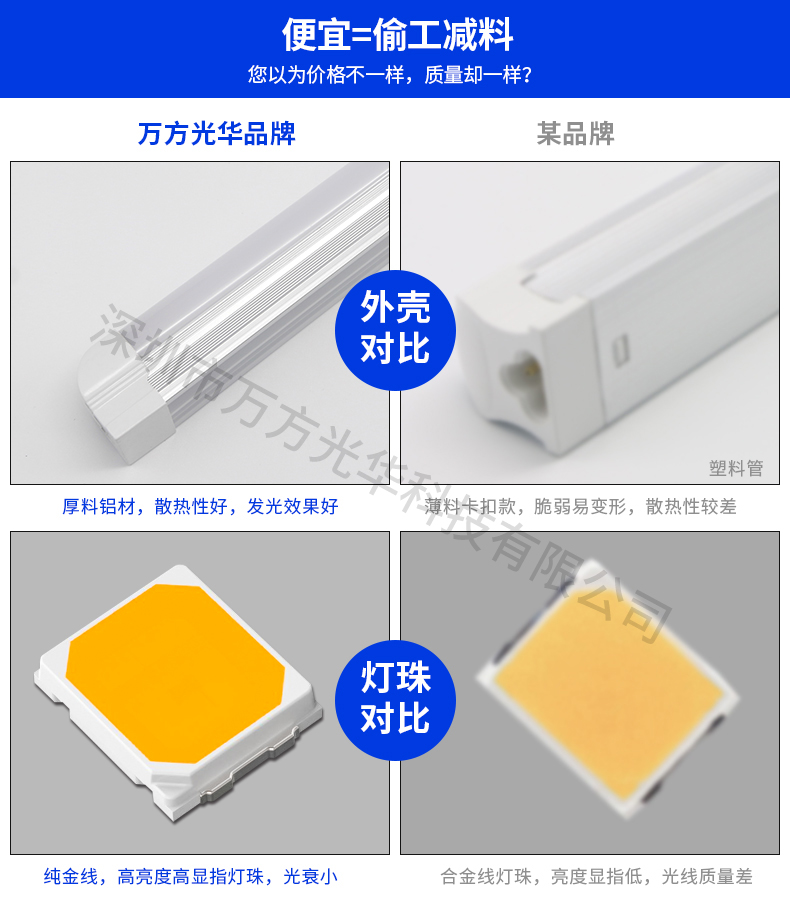 深圳市万方光华科技有限公司,专业研发、生产及销售LED灯管、面板灯,自有工厂,货期快,质量保证,目前已为全球数十万场所提供照明灯具及方案。灯管系列里有t5分体灯管、t5一体灯管、t5一体对接头灯管、t8分体灯管、t8一体灯管、t8转t5灯管、FA8灯管、双光源灯管、v型灯管、感应灯管等,规格款式多样,可按照客户需求定制。