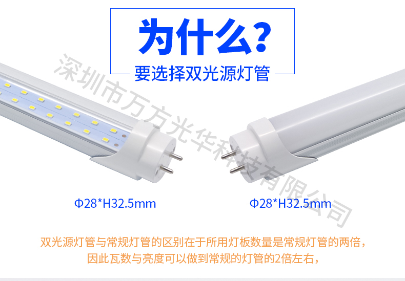 深圳市万方光华科技有限公司,专业研发、生产及销售LED灯管、面板灯,自有工厂,货期快,质量保证,目前已为全球数十万场所提供照明灯具及方案。灯管系列里有t5分体灯管、t5一体灯管、t5一体对接头灯管、t8分体灯管、t8一体灯管、t8转t5灯管、FA8灯管、双光源灯管、v型灯管、感应灯管等,规格款式多样,可按照客户需求定制。