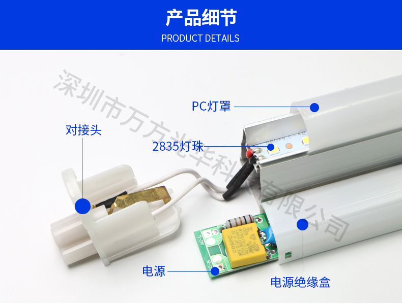 深圳市万方光华科技有限公司,专业研发、生产及销售LED灯管、面板灯,自有工厂,货期快,质量保证,目前已为全球数十万场所提供照明灯具及方案。灯管系列里有t5分体灯管、t5一体灯管、t5一体对接头灯管、t8分体灯管、t8一体灯管、t8转t5灯管、FA8灯管、双光源灯管、v型灯管、感应灯管等,规格款式多样,可按照客户需求定制。
