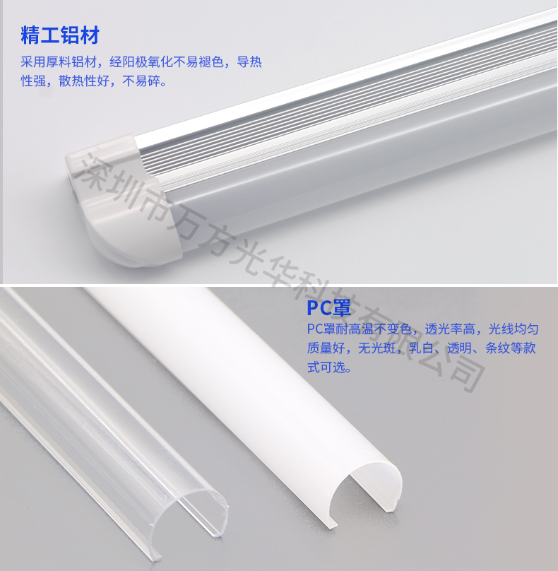 深圳市万方光华科技有限公司,专业研发、生产及销售LED灯管、面板灯,自有工厂,货期快,质量保证,目前已为全球数十万场所提供照明灯具及方案。灯管系列里有t5分体灯管、t5一体灯管、t5一体对接头灯管、t8分体灯管、t8一体灯管、t8转t5灯管、FA8灯管、双光源灯管、v型灯管、感应灯管等,规格款式多样,可按照客户需求定制。