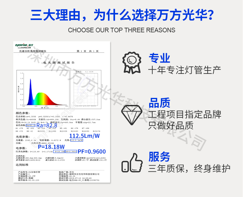 深圳市万方光华科技有限公司,专业研发、生产及销售LED灯管、面板灯,自有工厂,货期快,目前已为数十万场所提供照明灯具及方案。灯管系列里有t5分体灯管、t5一体灯管、t5一体对接头灯管、t8分体灯管、t8一体灯管、t8转t5灯管、FA8灯管、双光源灯管、v型灯管、感应灯管等,规格款式多样,可按照客户需求定制。