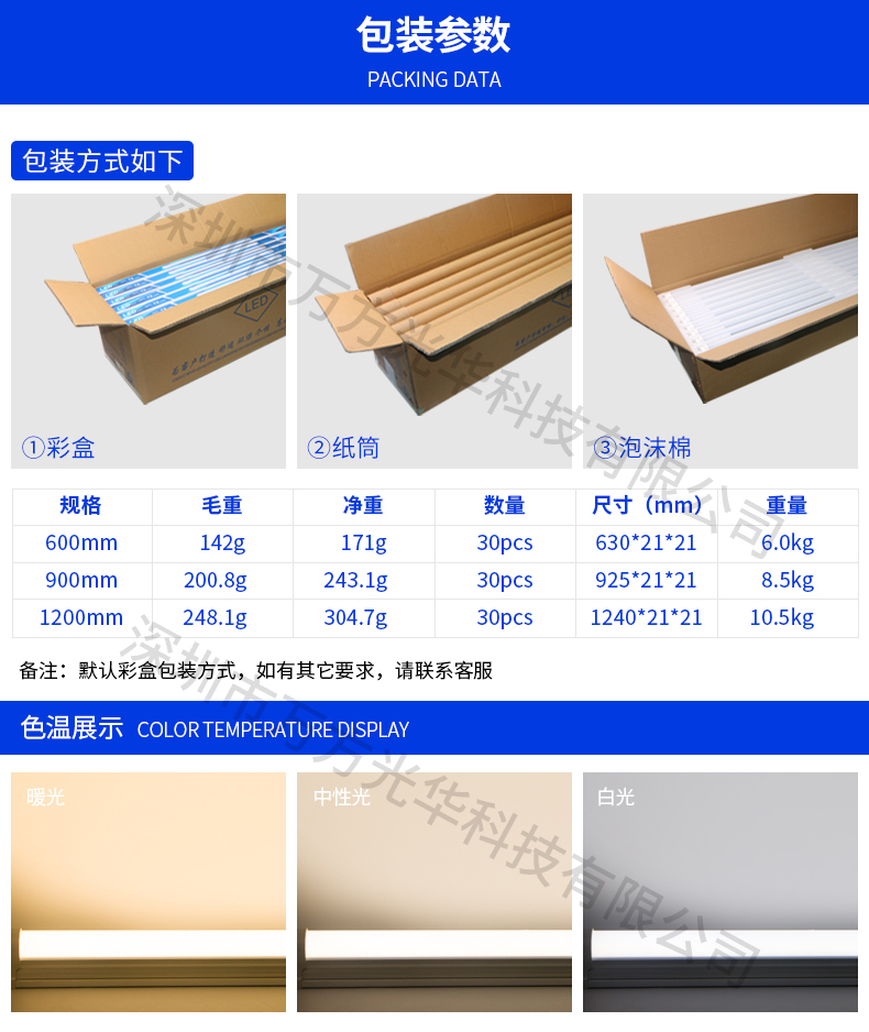 深圳市万方光华科技有限公司,专业研发、生产及销售LED灯管、面板灯,自有工厂,货期快,质量保证,目前已为全球数十万场所提供照明灯具及方案。灯管系列里有t5分体灯管、t5一体灯管、t5一体对接头灯管、t8分体灯管、t8一体灯管、t8转t5灯管、FA8灯管、双光源灯管、v型灯管、感应灯管等,规格款式多样,可按照客户需求定制。