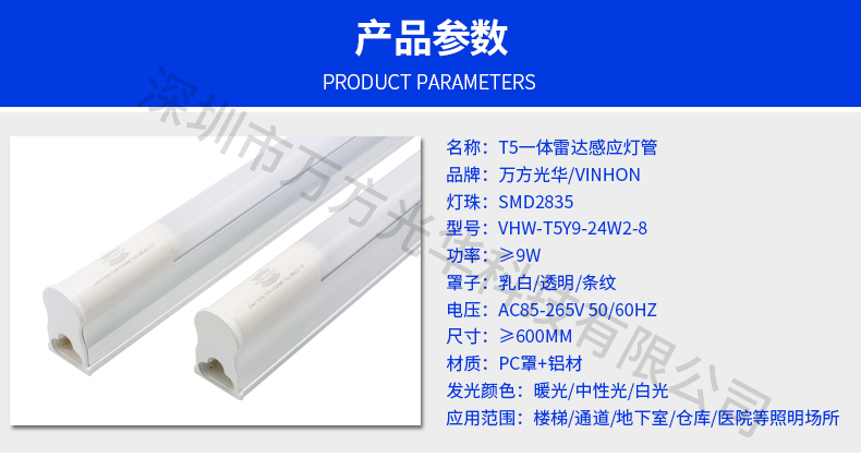 深圳市万方光华科技有限公司,专业研发、生产及销售LED灯管、面板灯,自有工厂,货期快,质量保证,目前已为全球数十万场所提供照明灯具及方案。灯管系列里有t5分体灯管、t5一体灯管、t5一体对接头灯管、t8分体灯管、t8一体灯管、t8转t5灯管、FA8灯管、双光源灯管、v型灯管、感应灯管等,规格款式多样,可按照客户需求定制。