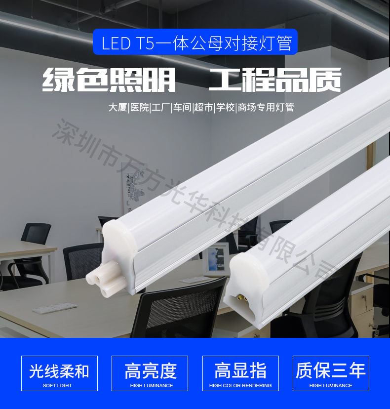 深圳市万方光华科技有限公司,专业研发、生产及销售LED灯管、面板灯,自有工厂,货期快,质量保证,目前已为全球数十万场所提供照明灯具及方案。灯管系列里有t5分体灯管、t5一体灯管、t5一体对接头灯管、t8分体灯管、t8一体灯管、t8转t5灯管、FA8灯管、双光源灯管、v型灯管、感应灯管等,规格款式多样,可按照客户需求定制。