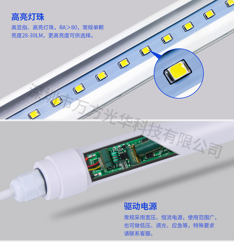 深圳市万方光华科技有限公司,专业研发、生产及销售LED灯管、面板灯,自有工厂,货期快,质量保证,目前已为全球数十万场所提供照明灯具及方案。灯管系列里有t5分体灯管、t5一体灯管、t5一体公母对接头灯管、t8分体灯管、t8一体灯管、t8转t5灯管、FA8灯管、双光源灯管、v型灯管、感应灯管等,规格款式多样,可按照客户需求定制。
