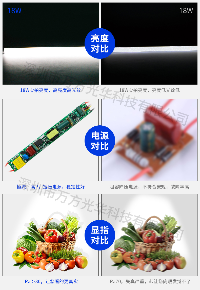 深圳市万方光华科技有限公司,专业研发、生产及销售LED灯管、面板灯,自有工厂,货期快,质量保证,目前已为全球数十万场所提供照明灯具及方案。灯管系列里有t5分体灯管、t5一体灯管、t5一体公母对接头灯管、t8分体灯管、t8一体灯管、t8转t5灯管、FA8灯管、双光源灯管、v型灯管、感应灯管等,规格款式多样,可按照客户需求定制。