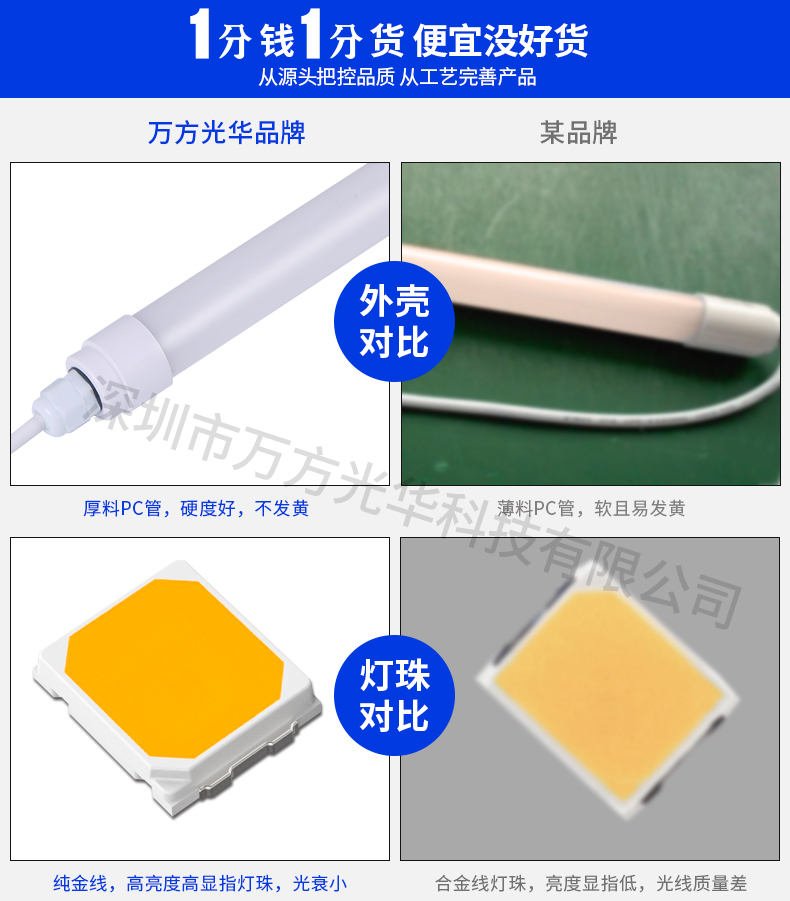 深圳市万方光华科技有限公司,专业研发、生产及销售LED灯管、面板灯,自有工厂,货期快,质量保证,目前已为全球数十万场所提供照明灯具及方案。灯管系列里有t5分体灯管、t5一体灯管、t5一体公母对接头灯管、t8分体灯管、t8一体灯管、t8转t5灯管、FA8灯管、双光源灯管、v型灯管、感应灯管等,规格款式多样,可按照客户需求定制。