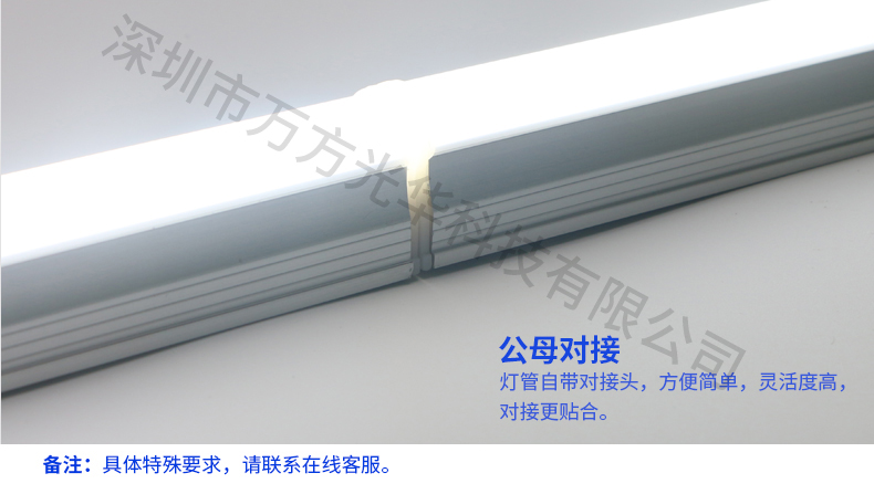 深圳市万方光华科技有限公司,专业研发、生产及销售LED灯管、面板灯,自有工厂,货期快,质量保证,目前已为全球数十万场所提供照明灯具及方案。灯管系列里有t5分体灯管、t5一体灯管、t5一体对接头灯管、t8分体灯管、t8一体灯管、t8转t5灯管、FA8灯管、双光源灯管、v型灯管、感应灯管等,规格款式多样,可按照客户需求定制。