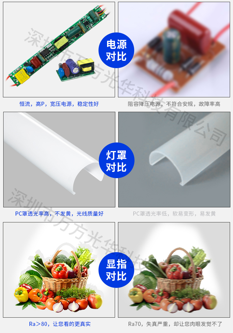 深圳市万方光华科技有限公司,专业研发、生产及销售LED灯管、面板灯,自有工厂,货期快,质量保证,目前已为全球数十万场所提供照明灯具及方案。灯管系列里有t5分体灯管、t5一体灯管、t5一体对接头灯管、t8分体灯管、t8一体灯管、t8转t5灯管、FA8灯管、双光源灯管、v型灯管、感应灯管等,规格款式多样,可按照客户需求定制。