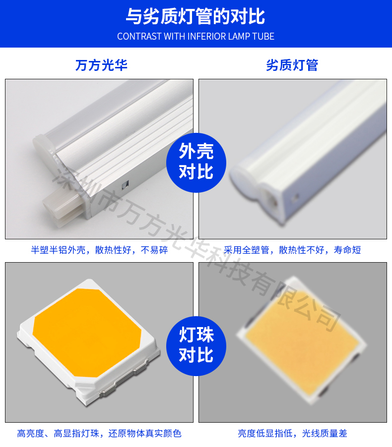 深圳市万方光华科技有限公司,专业研发、生产及销售LED灯管、面板灯,自有工厂,货期快,质量保证,目前已为全球数十万场所提供照明灯具及方案。灯管系列里有t5分体灯管、t5一体灯管、t5一体对接头灯管、t8分体灯管、t8一体灯管、t8转t5灯管、FA8灯管、双光源灯管、v型灯管、感应灯管等,规格款式多样,可按照客户需求定制。