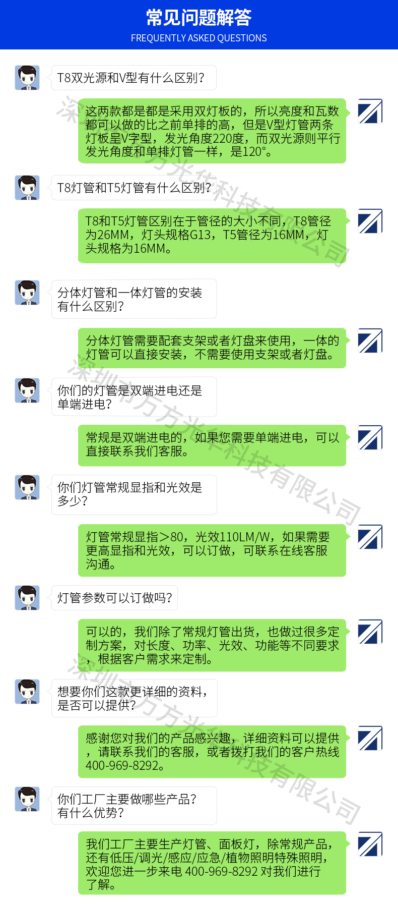 深圳市万方光华科技有限公司,专业研发、生产及销售LED灯管、面板灯,自有工厂,货期快,质量保证,目前已为全球数十万场所提供照明灯具及方案。灯管系列里有t5分体灯管、t5一体灯管、t5一体对接头灯管、t8分体灯管、t8一体灯管、t8转t5灯管、FA8灯管、双光源灯管、v型灯管、感应灯管等,规格款式多样,可按照客户需求定制。