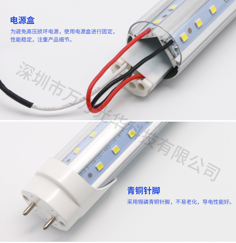 深圳市万方光华科技有限公司,专业研发、生产及销售LED灯管、面板灯,自有工厂,货期快,质量保证,目前已为全球数十万场所提供照明灯具及方案。灯管系列里有t5分体灯管、t5一体灯管、t5一体对接头灯管、t8分体灯管、t8一体灯管、t8转t5灯管、FA8灯管、双光源灯管、v型灯管、感应灯管等,规格款式多样,可按照客户需求定制。