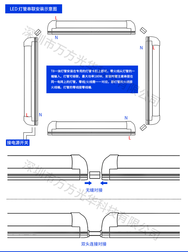深圳市万方光华科技有限公司,专业研发、生产及销售LED灯管、面板灯,自有工厂,货期快,质量保证,目前已为全球数十万场所提供照明灯具及方案。灯管系列里有t5分体灯管、t5一体灯管、t5一体对接头灯管、t8分体灯管、t8一体灯管、t8转t5灯管、FA8灯管、双光源灯管、v型灯管、感应灯管等,规格款式多样,可按照客户需求定制。