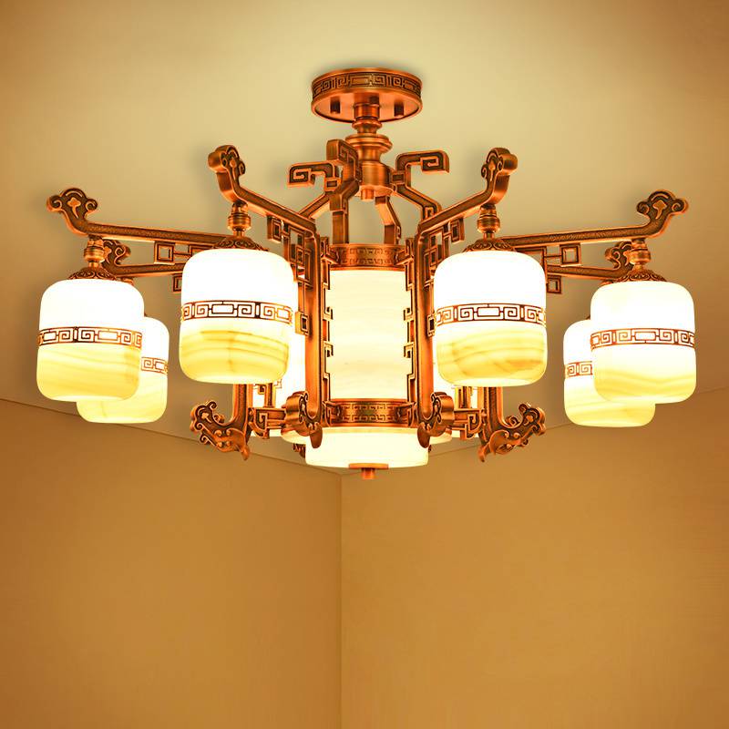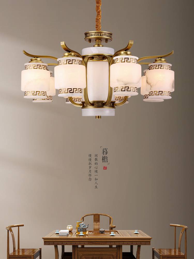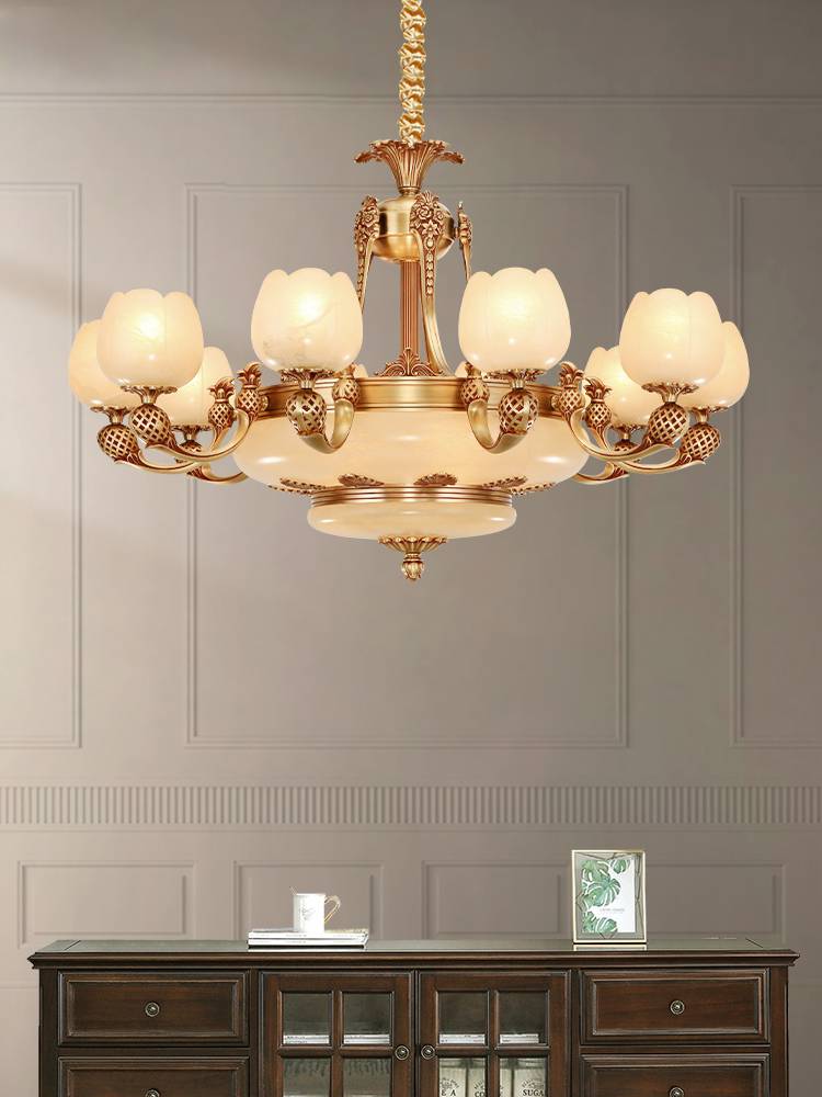 樊灯别墅欧式楼梯大堂吊灯客厅灯奢华大气云石简欧卧室灯具美式现代简约饭厅全铜灯