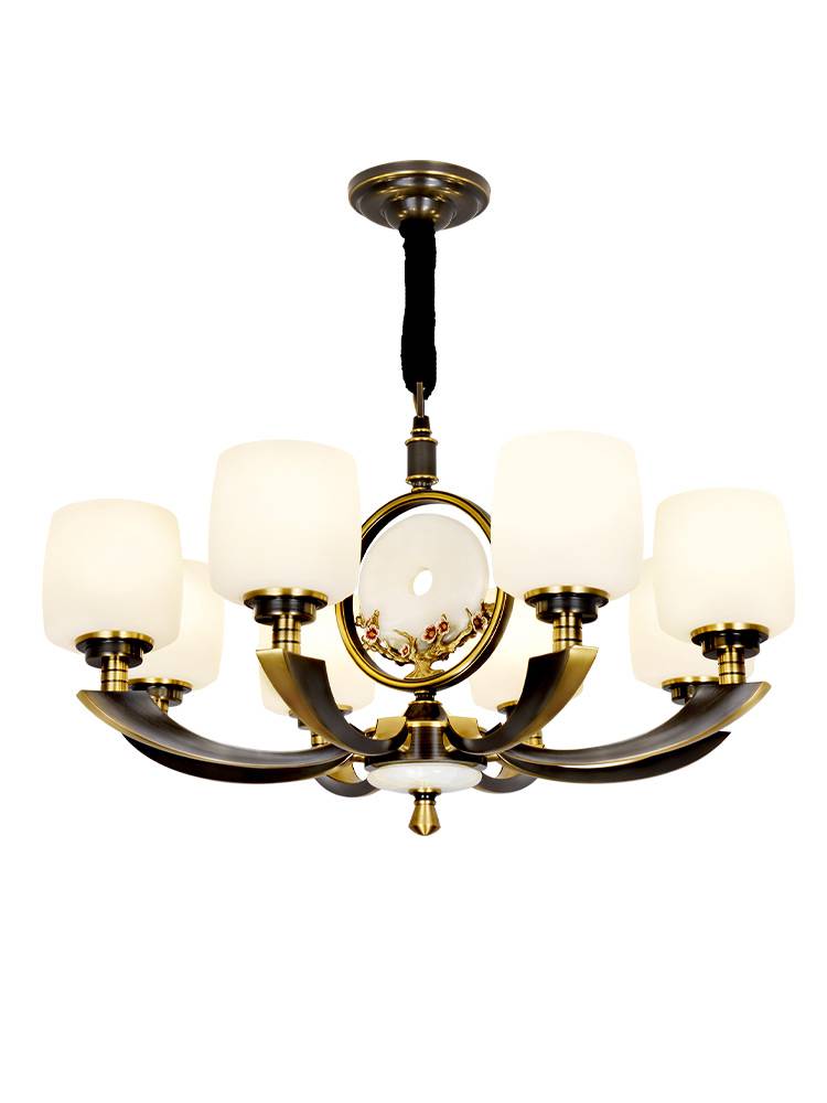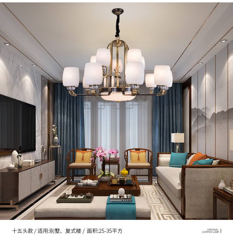樊灯别墅楼梯灯新中式吊灯客厅灯具全铜云石中国风简约大气现代餐厅卧室大厅灯