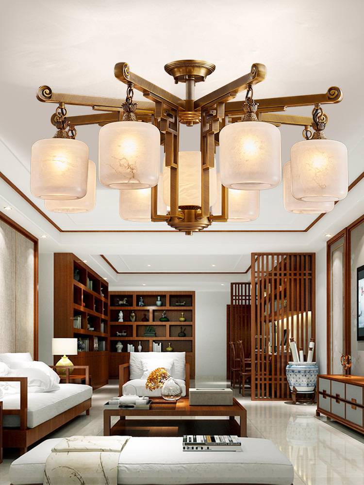 樊灯客厅大堂 全铜吊灯 现代新中式别墅复式楼中国风客厅艺术