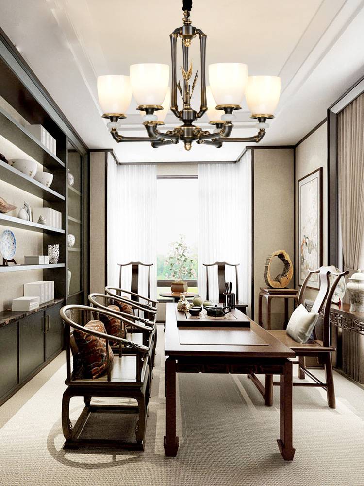 樊灯新中式吊灯客厅全铜灯具云石仿光石中国风简约大气现代餐厅饭厅艺术灯具