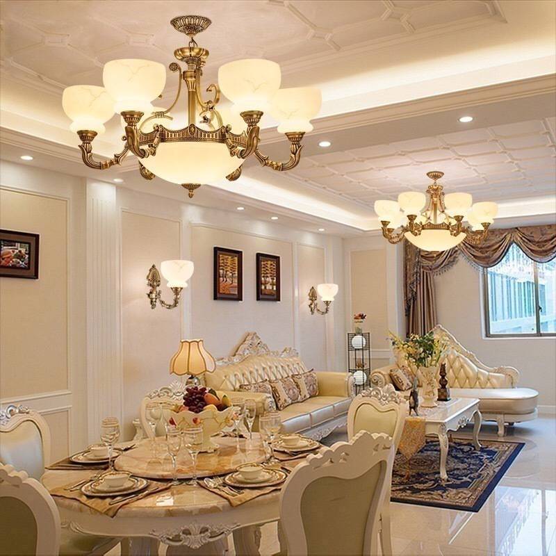 樊灯美式轻奢吊灯客厅灯全铜灯具奢华大气欧式餐厅灯现代简约复古云石家用艺术灯