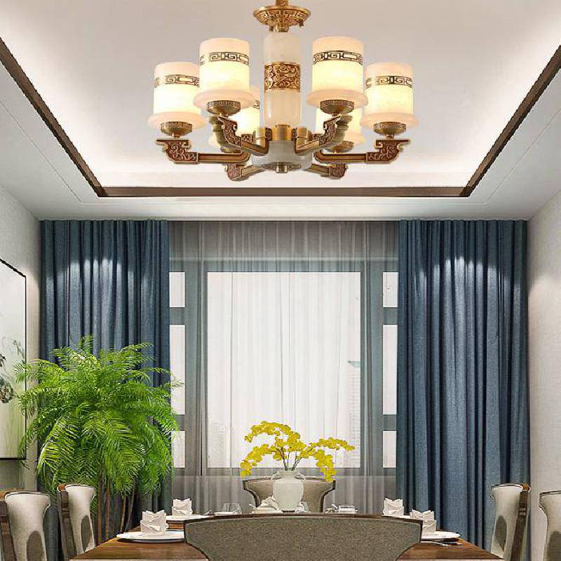 樊灯新中式客厅吊灯全铜玉石中国风简约现代餐厅灯轻奢吊灯饰