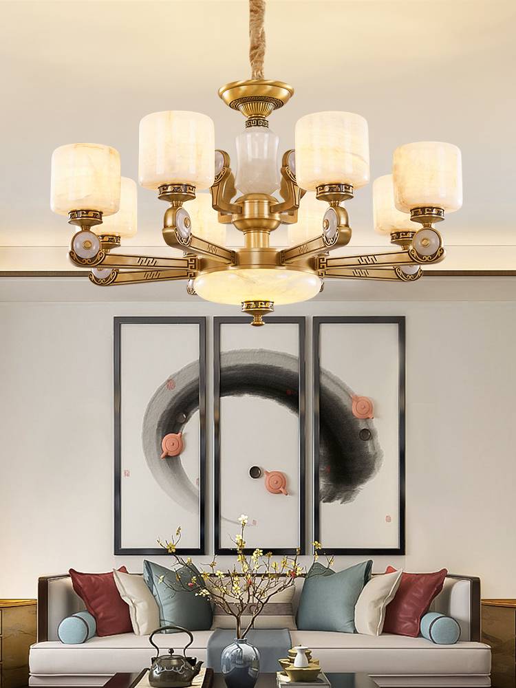 樊灯欧式吊灯客厅灯奢华大气云石简欧卧室灯具美式现代简约餐厅全铜灯