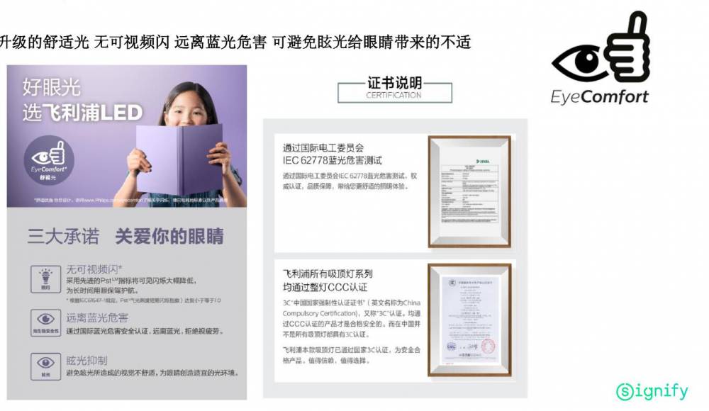 升级的舒适光,无可视频闪,远离蓝光危害,可避免眩光给眼睛带来的不适
