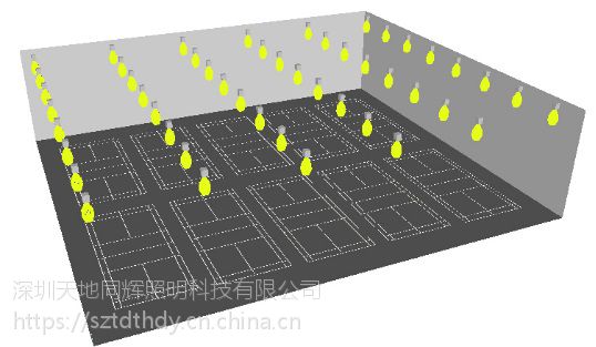 场馆主要特点:相对国家标准(8米)的高度这类球馆的高度略显不足,一般无法进行正规的比赛,多为爱好者娱乐为主,主要适用灯具为功率较小的灯具,设计方案如下: