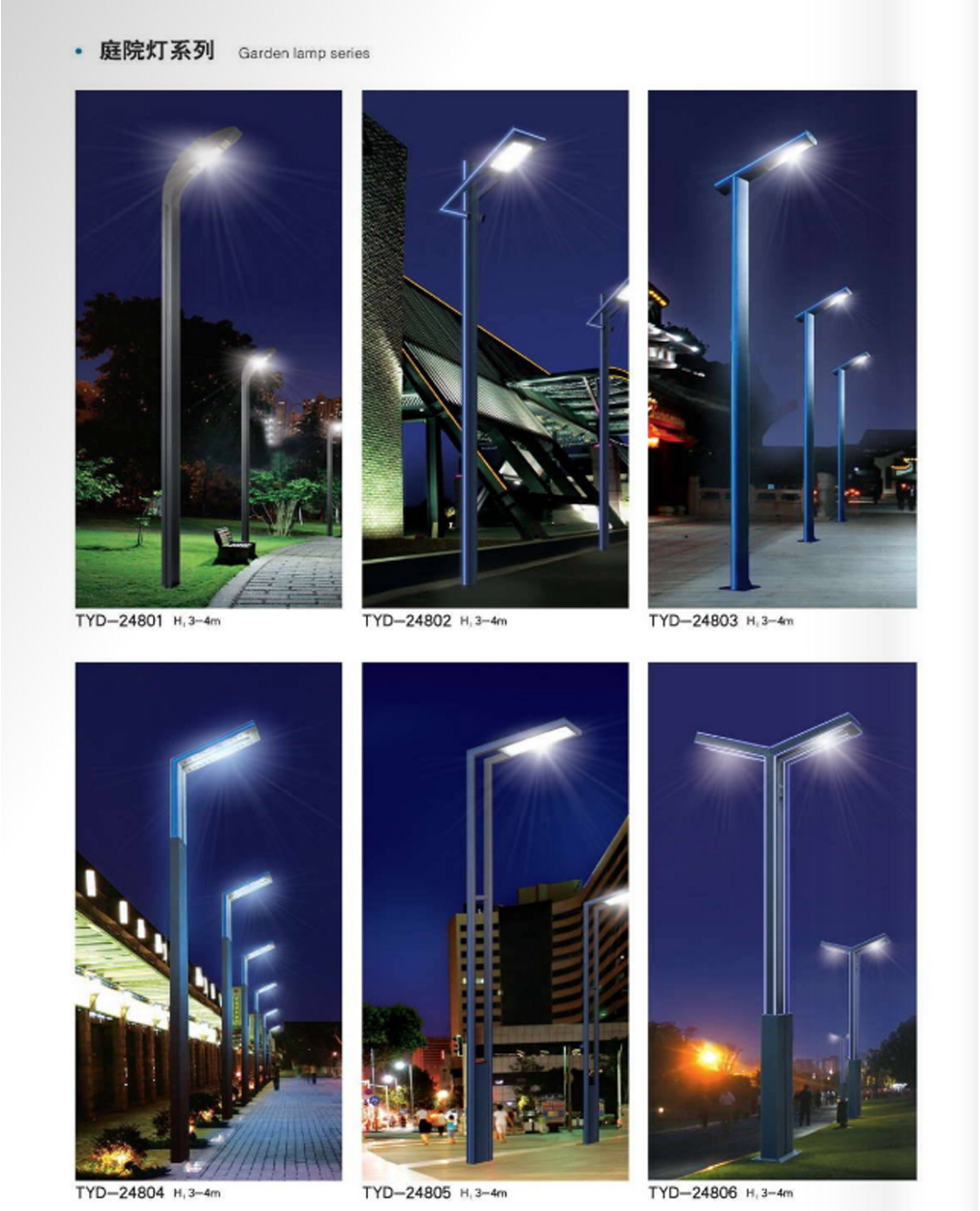 庭院灯其具有多样性、美观性,具有美化和装饰环境的特点,所以也被称之为景观庭院灯,其高度一般有2.5米、3米、3.5米、4米、4.5米、5米几种常用规格。