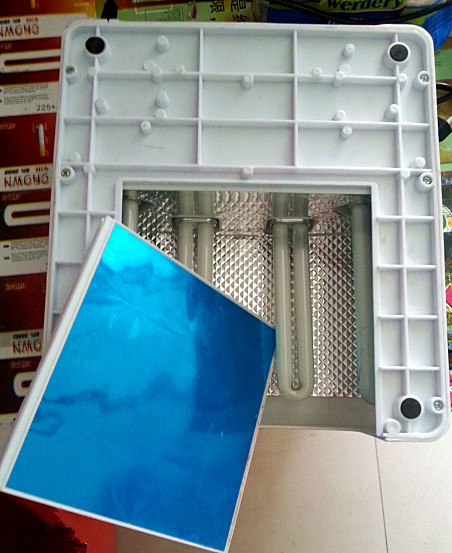 ![]() 可以拆装 底部实拍![]() ![]() ![]() ![]() 使用时, 将抽屉板上蓝色塑料薄膜撕掉, 可增强烘照效率.体积轻巧, 外形美观, 使用方便. 放在工作台或是地板上一点都不会占空间. 可以用在手部烘烤,适合烘烤手指及脚趾 ~ 使用方法: 1.上电源插座, 将O/I 开关开到 I 的位置. 2.将手或者脚放进机体内, 按压机体后方的方形按钮. 机体会开始亮灯运作。 |