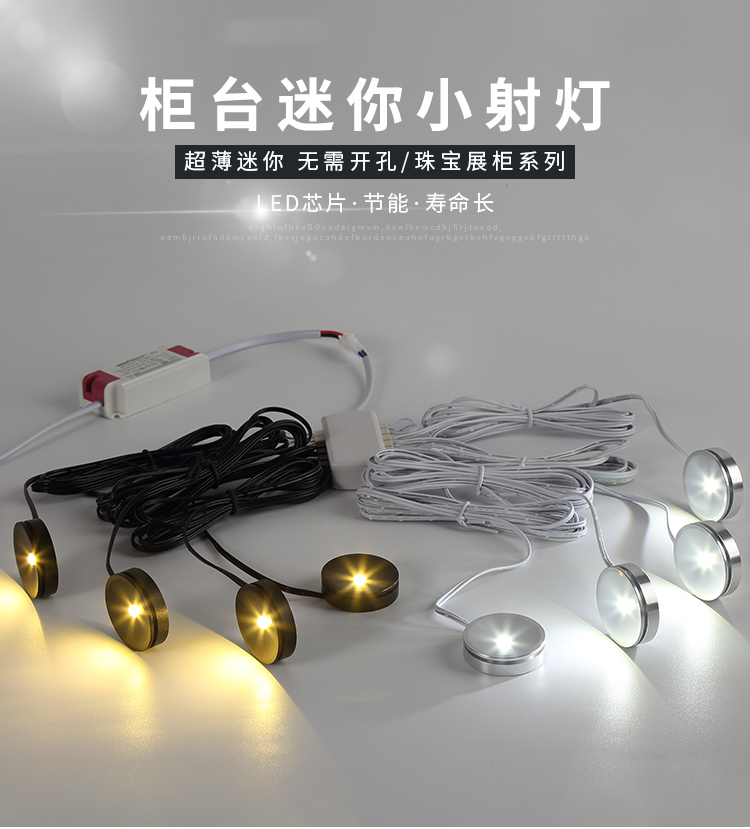 薄款迷你射灯LED1W橱柜展柜免开孔天花筒灯