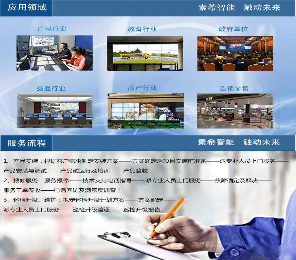 9.广泛应用于安防、指挥中心、企业展示、广告传媒、会展中心、厂矿、电力、水利、调度监控、机场检录、机场航班显示地图、广播中心、演播室、培训机构、房地产、酒店、银行、卖场、餐饮、商城、机关单位、等各个行业。
