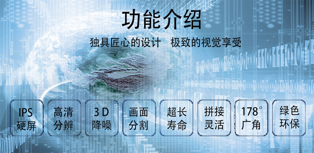 2.执行研发铝合金箱体,内置了电源、驱动、接口、拼接处理器等集成化模块 ,钢化玻璃保护以避免 碰撞脆弱液晶玻璃,科学的散热系统设计,内置温度控制报警模块,是产品运行稳定安全。