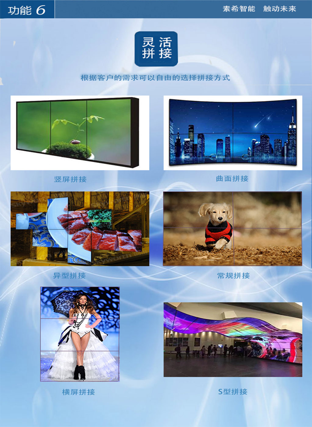 上海素希智能科技有限公司专业生产销售液晶拼接屏,公司郑重承诺无外包,进口原装,全国上门安装,免费看现场出方案,上海素希智能科技有限公司是一家集生产销售安装为一体的公司,欢迎各界来工厂考察!