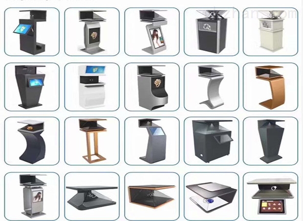 全息立体成像系统柜体的外观时尚美观,科技感 。其顶端四面透明,真正的空间成像色彩鲜艳,对比度、清晰度都非常高,空间感、透视感很强。柜体上方形成的空中幻象中间可结合实物,实现影像与实物的结合。