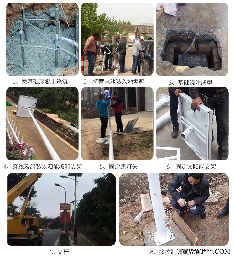 1、智能控制器,微电脑可调控智能控制器,具有光控开、时控关延长和节能的设置模式,更有利于系统稳定工作,同时具有防过充过放保护防雷的作用。