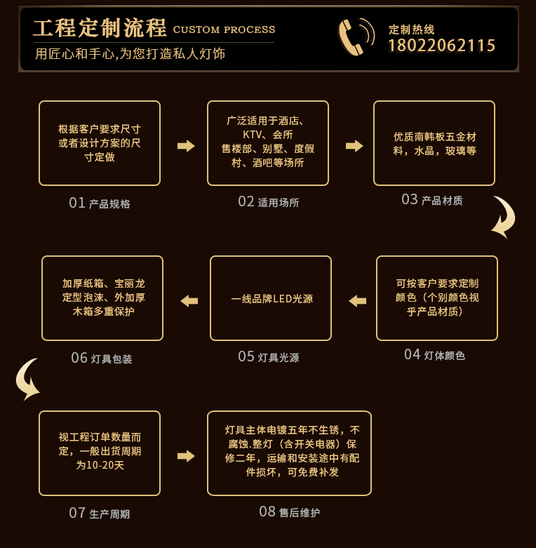 二:“立阳灯饰”是一家专业从事酒店水晶灯,非标工程水晶灯具定制灯具的厂家,业务范围包括灯具的生产,研发,定制,工程项目方案定制,产品有传统水晶灯,水晶吊灯,水晶吸顶灯,后现代水晶灯,酒店非标工程定制灯具等一系列的室内装饰灯具,应用领域包括酒店,售楼部,商业大楼,饭店,城市综合体,等装饰项目,行业用心经营,技术成熟,经验丰富,用心对待每位客户!