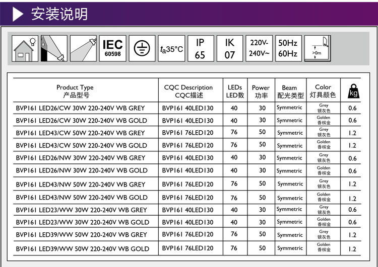 显色指数 : 80 工作频率 : 50-60(Hz)