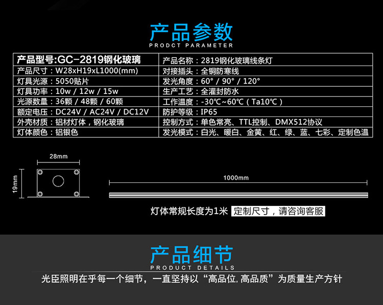 | 默认出线长度 : | 30CM | 尺寸 : | W28*H19*L1000MM |