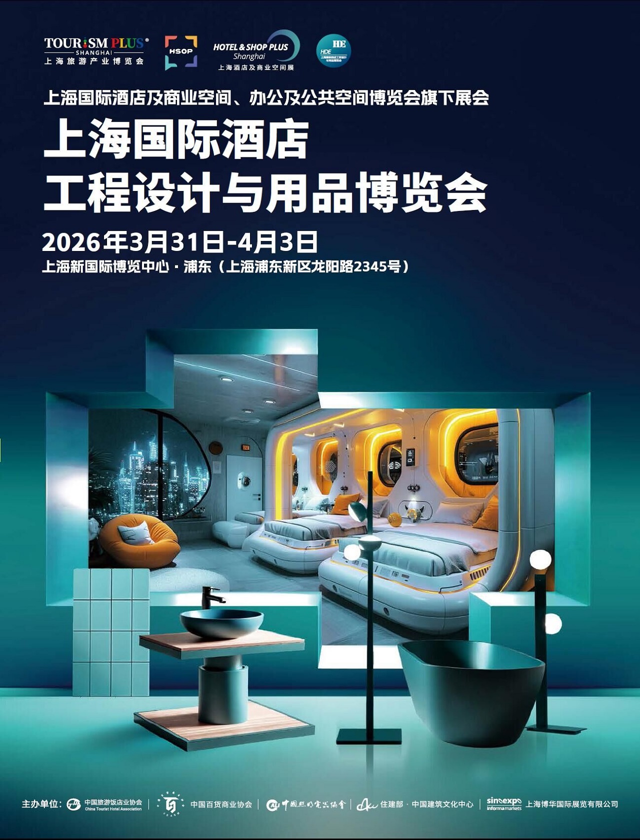 2026年将于3月31-4月3日在上海新国际博览中心 • 浦东举办,将持续打造高质量、高水平的酒店及商业空间建设与运营采购盛会。展会由中国旅游饭店业协会、中国百货商业协会、中国照明电器协会、住房和城乡建设部•中国建筑文化中心、上海博华国际展览有限公司联合主办。现场将汇聚卫浴/泳池/桑拿,墙/地面材料、户外设计、室内设计、智慧酒店、照明灯饰、智能控制系统、酒店用品综合、智慧办公、商业空间、商业设计等酒店及商业空间筹建与运营领域各类品牌展商。