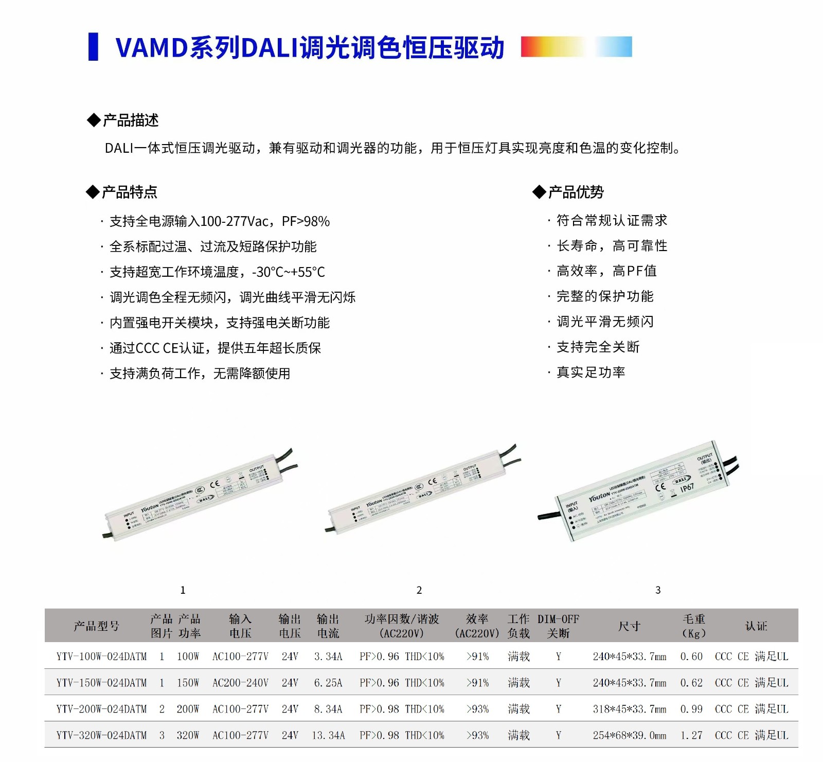 调光平滑无闪频,CCC认证,支持全电源输入100-277Vac