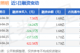 - 佛山照明:4月30日融资买入908.79万元,融资融券余额1.68亿元