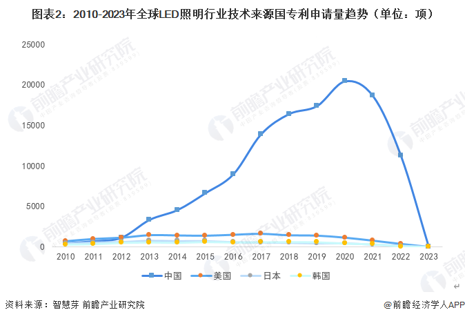 (2)专利申请趋势:中国专利申请数量保持第一