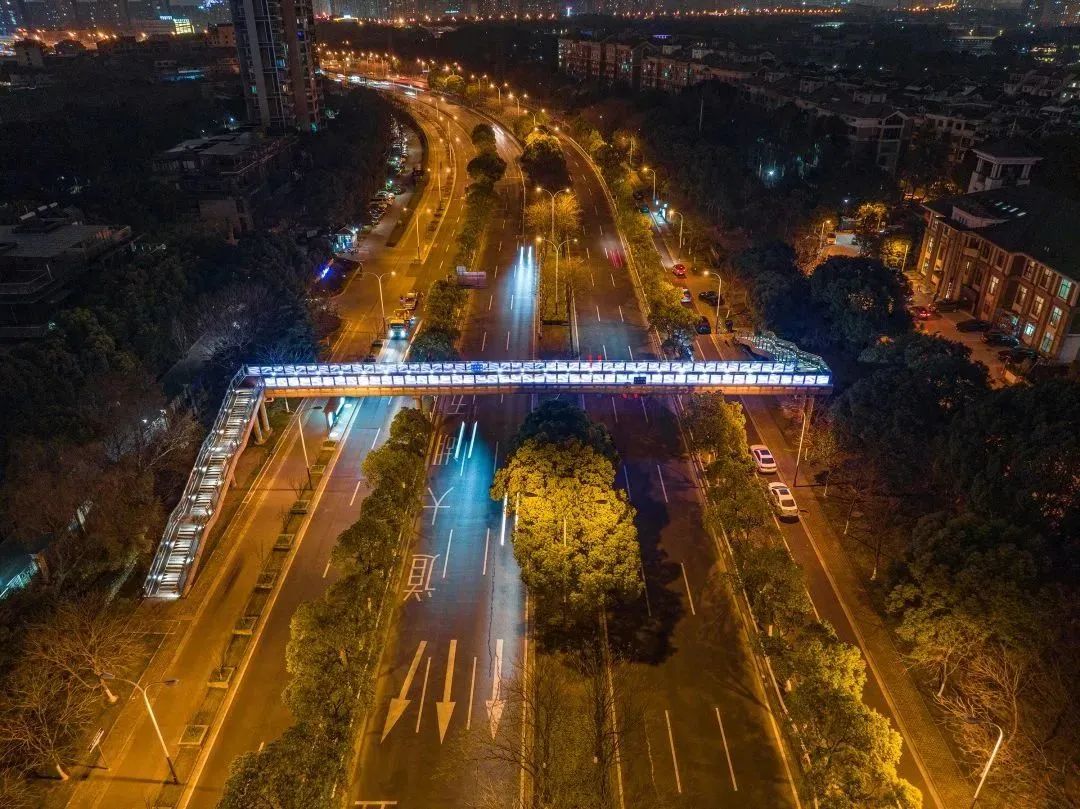 据介绍,本次项目共安装节能环保LED节能灯具1228套,包括感应式步道灯776套,整体亮化设计简洁明快,凸显天桥结构,感应灯的应用更带来“灯随人亮、灯随车动”的效果。