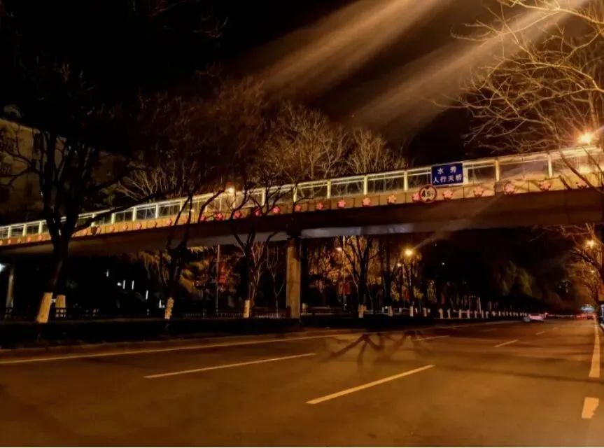 改造前的天桥非机动车道和人行楼梯不具备功能性照明,市民夜间经过必须小心翼翼。安装上具有红外感应和分时控制模块功能的步道灯之后,天桥变得“聪慧又体贴”。华灯初上之时,车辆行人川流不息,4座天桥上的步道灯开启全亮模式,保障高峰时段市民出行。